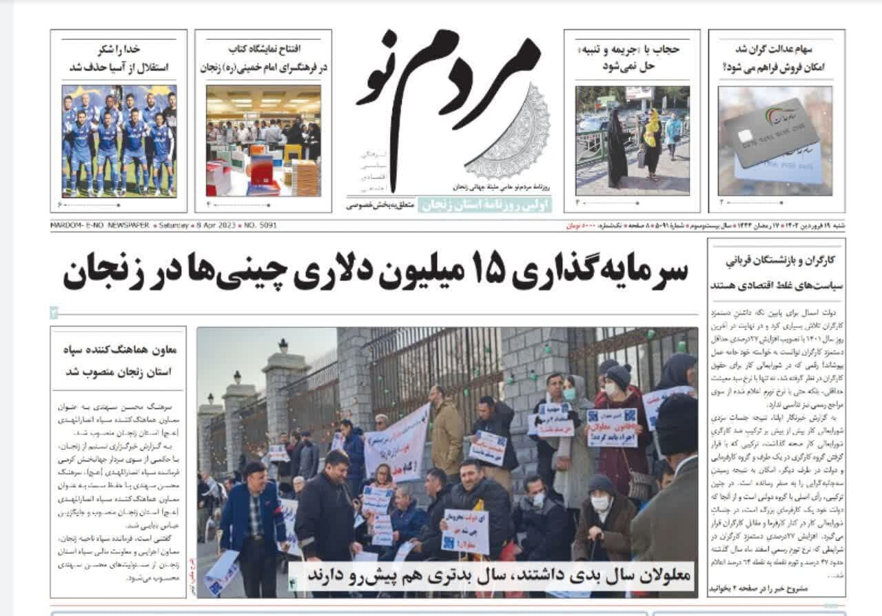 ۱۹ فروردین ۱۴۰۲ — صفحه اول روزنامه های استان زنجان ۱۹ فروردین ۱۴۰۲
